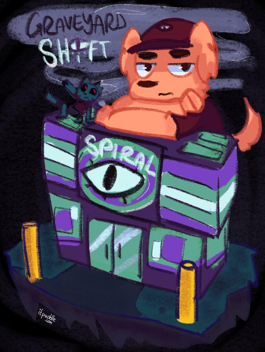 Graveyard Shift is an animated comedy musical scheduled for 2023 pre-production.In the void space connecting the many worlds of limbo (known as The In-Between) Benjamin works alone at The Spiral Eye (TSE), the best only corner-store accessible only to the dead. Ben’s solitude is interrupted when Kitsch, a cat obsessed with the world of the living, is hired beside him.Stuck in the limbo of retail hell (long hours, unfair upper management, dead denizens, and secrets that could jeopardize everything) the two unlikely friends must brave the Graveyard Shift.